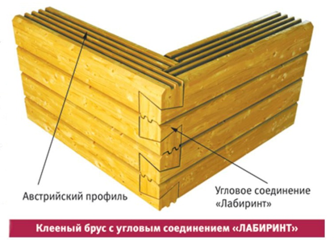 Клееный брус производства компании «Зодчий» имеет сложный австрийский профиль с пазогребневым соединением. За счет увеличенного количества зубьев обеспечивается максимальная плотность примыкания венцов друг к другу без дополнительного использования межвенцового уплотнителя. Профиль бруса спроектирован таким образом, что контакт клеевых швов с атмосферными осадками исключен. - Теплые углы.